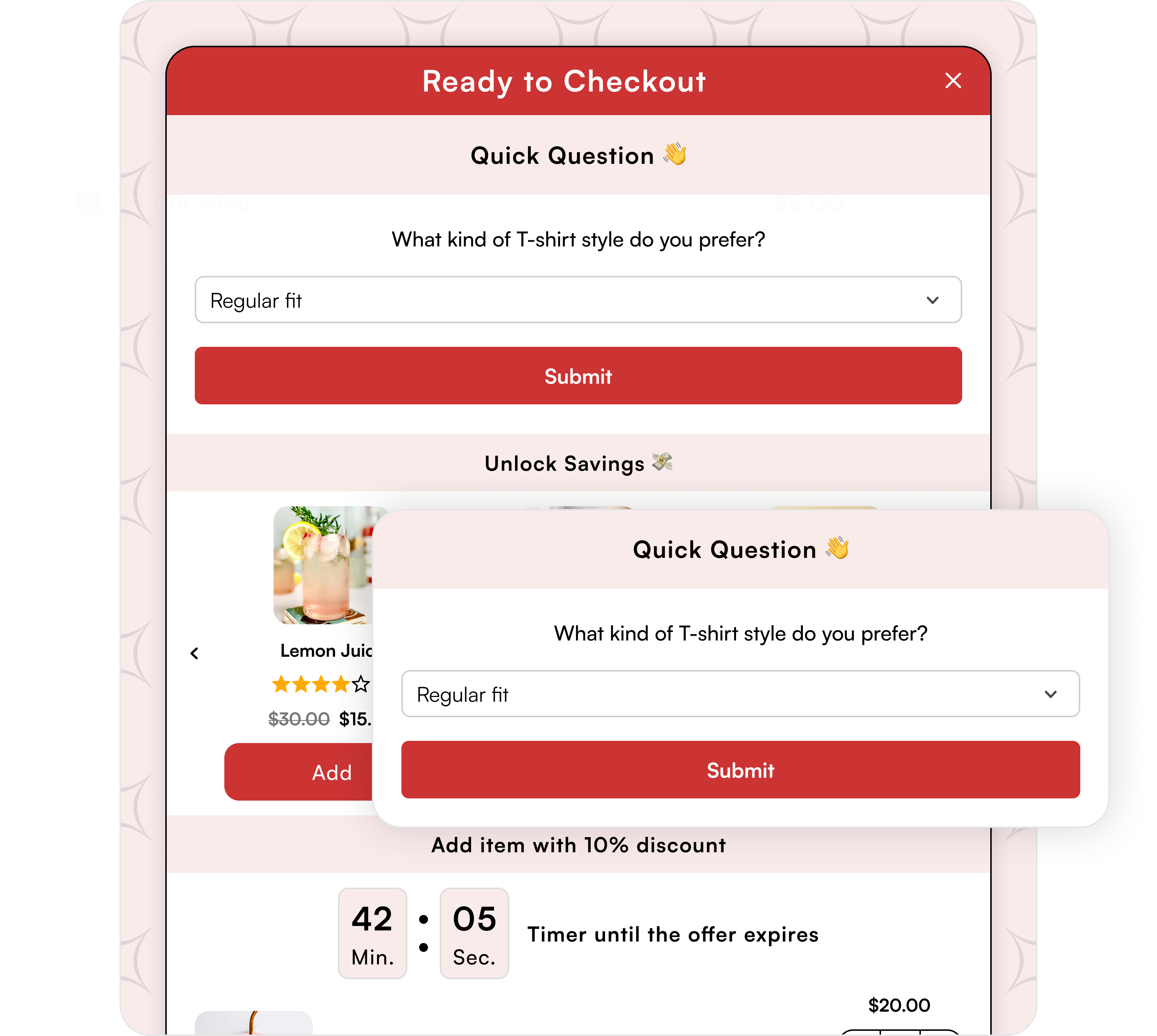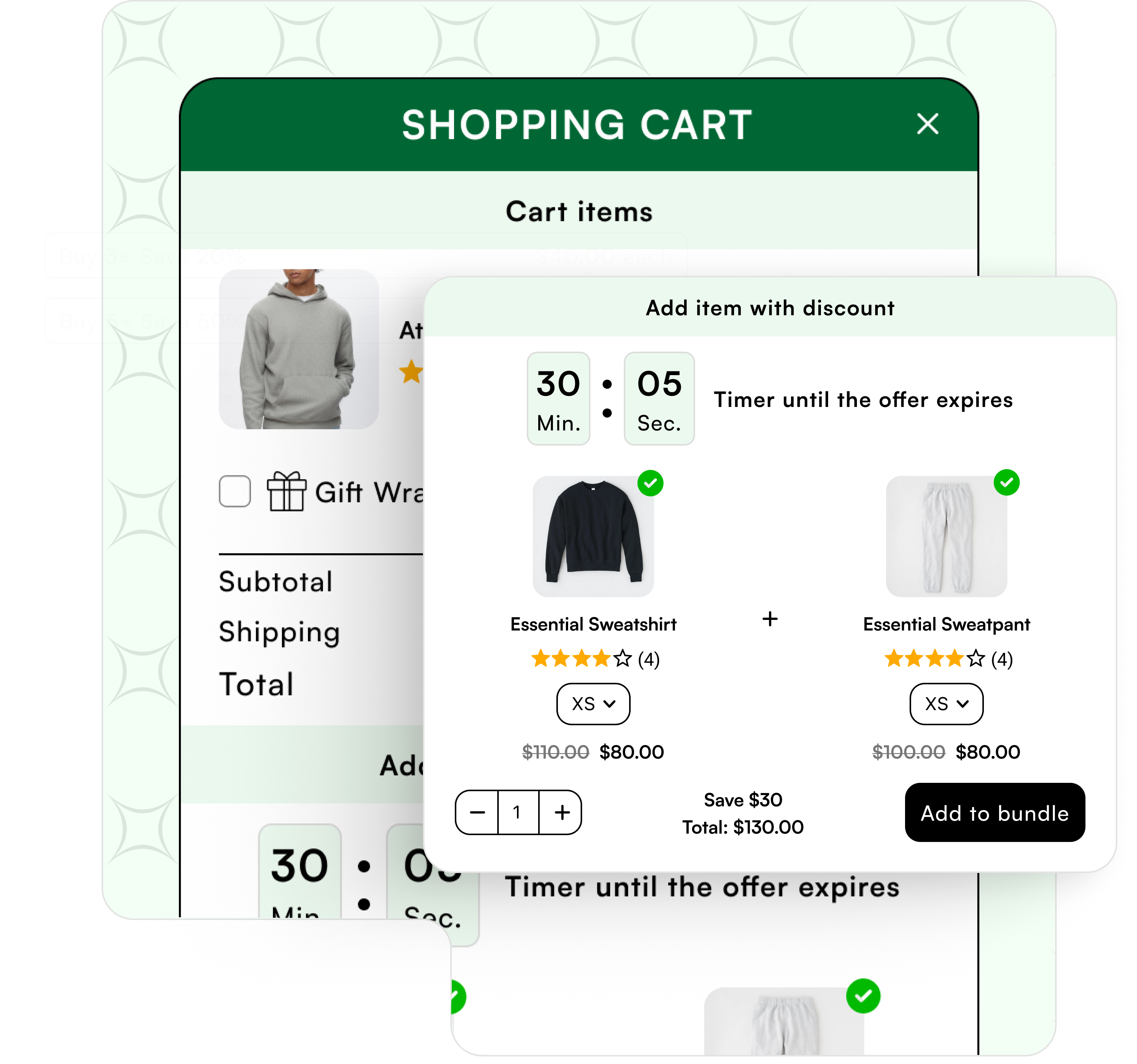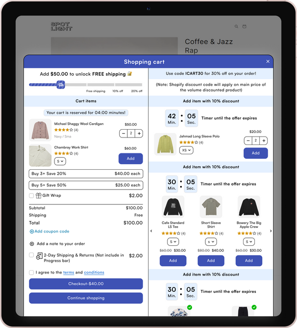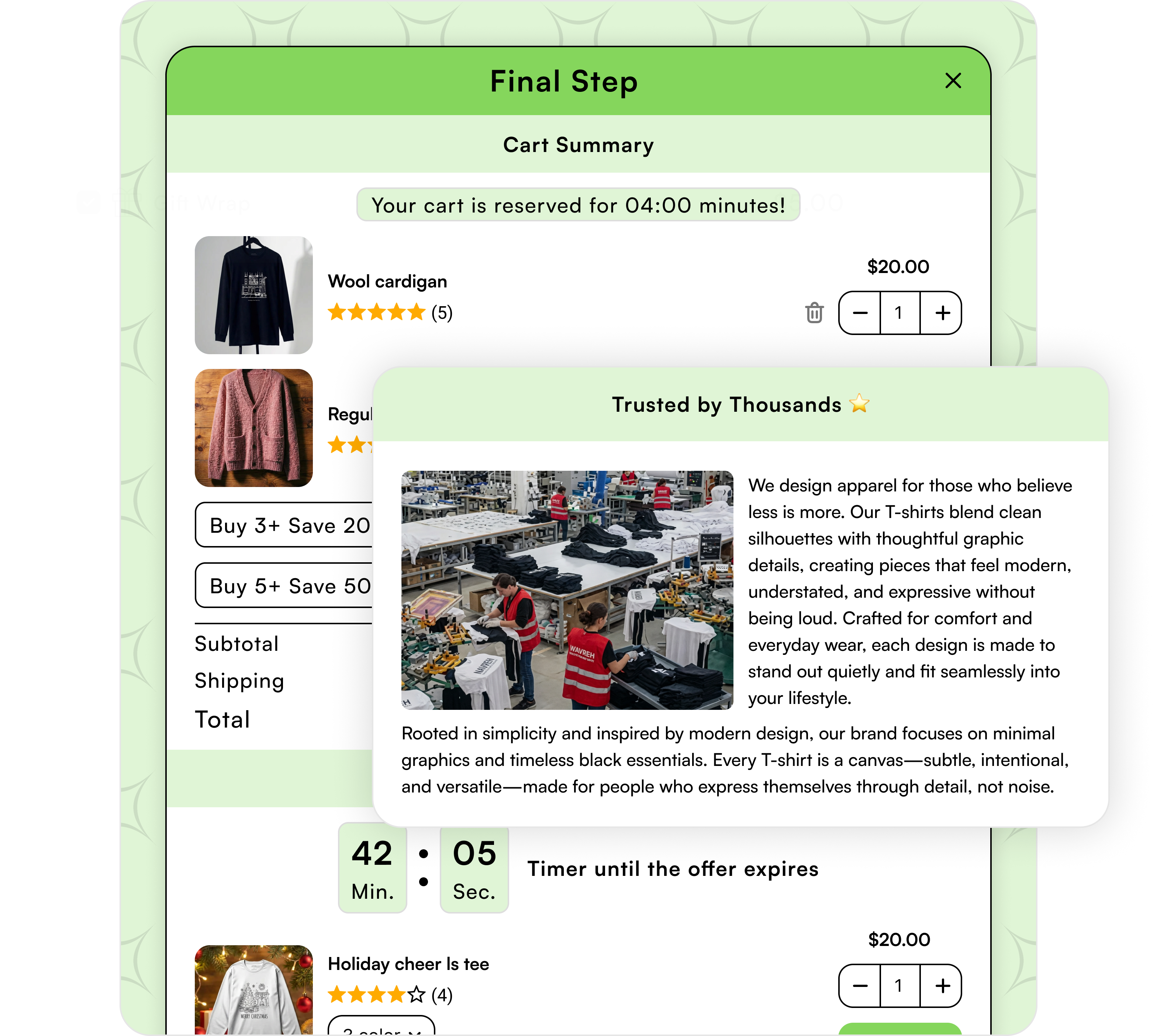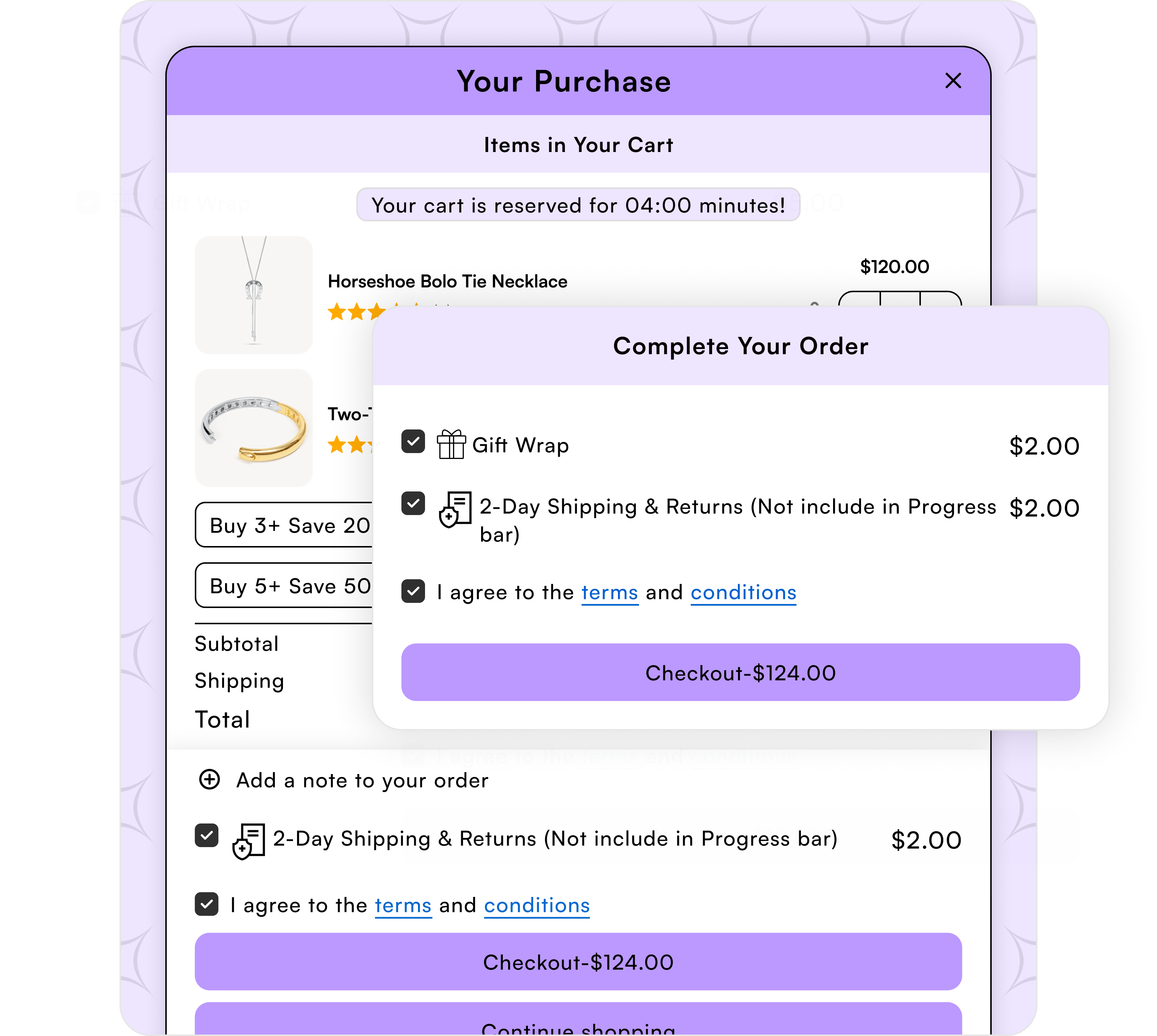 Turn abandoned carts into completed purchases with iCart. Create a fully customized cart experience in minutes & boost AOV by offering smart upsell & cross-sell offers right in the cart.